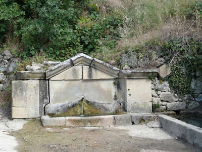 En el camino que conduce a la ermita de Santo Tomás, ya en las afueras de la población, podemos contemplar la fuente que vemos en la imagen. Probablemente de finales del siglo XIX muestra , especialmente en su cabecera, un aspecto señorial, clasicista, dentro de su discreción y humildad. Un largo abrevadero recoge las aguas que fluyen de su chorro central. Como observamos se sitúa en posición baja, a contraterreno, protegida en sus flancos oeste y norte por dos muros de manpostería que a su vez delimitan las fincas superiores. Al fondo vemos la aldaya boscosa, y la cresta pétrea de la Sierra de Limitaciones.